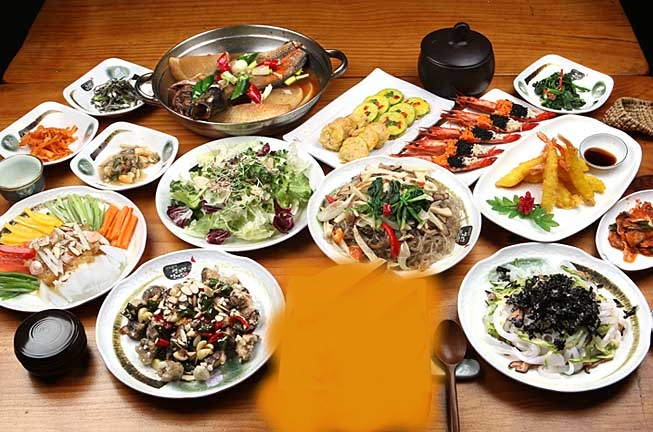해파리냉채,잡채,새우튀김 등 중간메인 요리로는 대하오색선,활어회,갈비찜,홍어삼합요리이며,